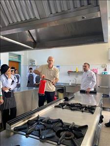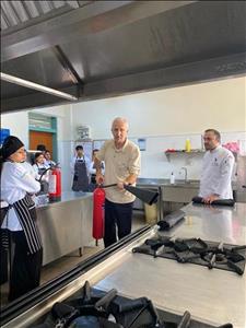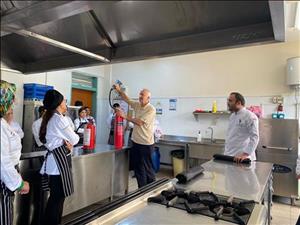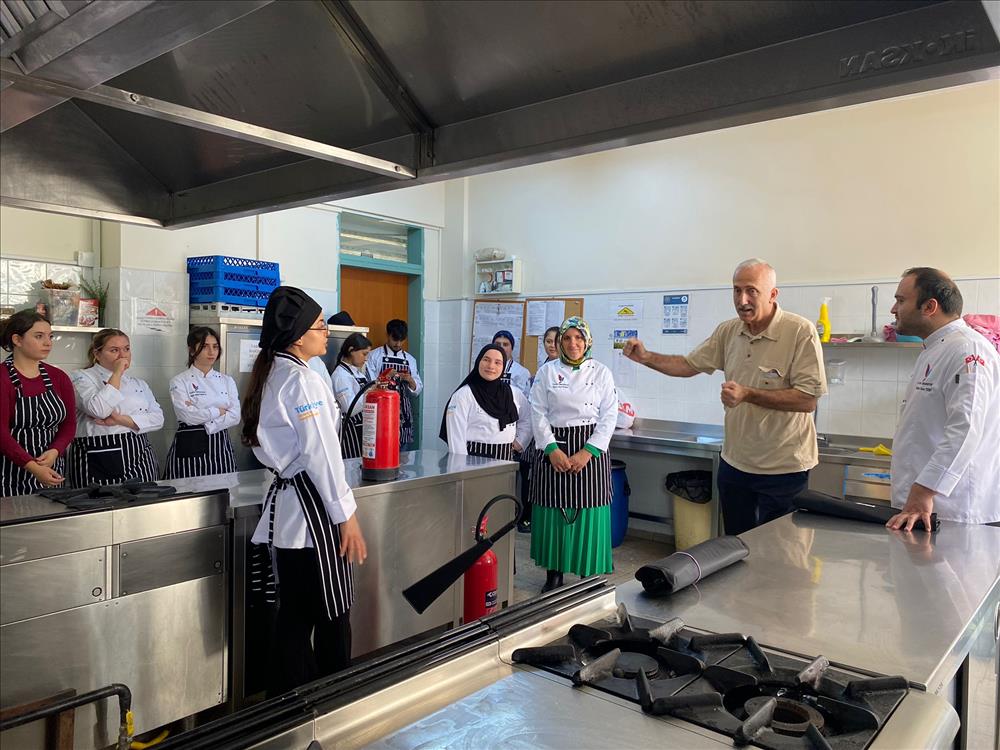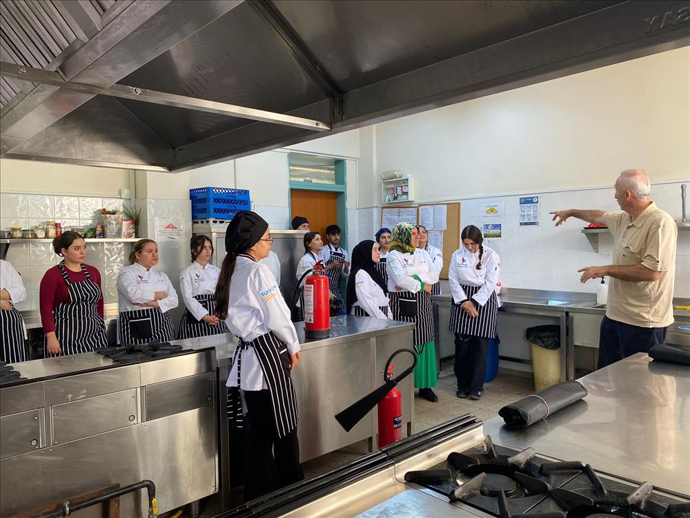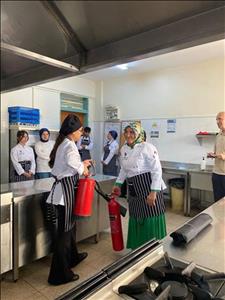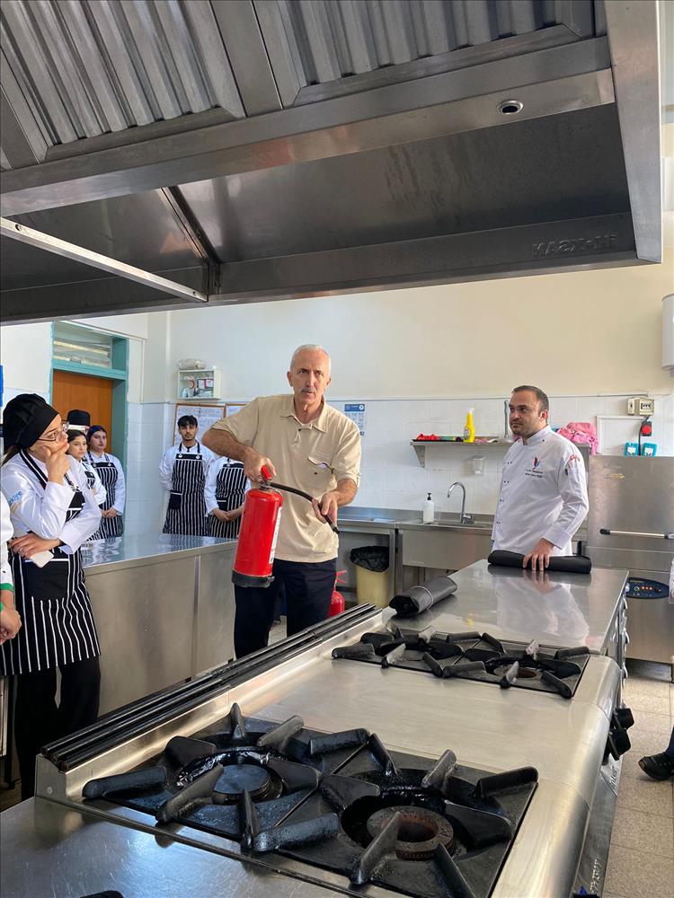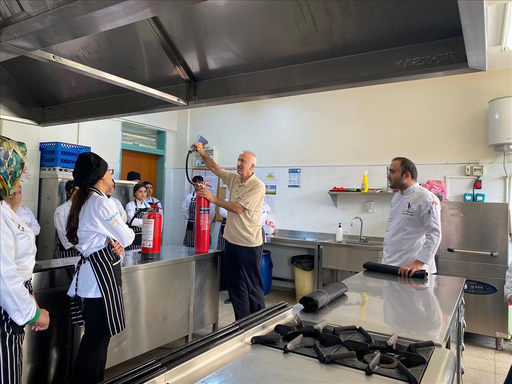 Otel, Lokanta ve İkram Hizmetleri Bölümü Aşçılık Programı öğrencileri, mesleki güvenlik bilincini artırmak amacıyla düzenlenen “Mutfakta Yangın Güvenliği ve Söndürme Teknikleri” konulu eğitime katıldı.Gerçekleştirilen eğitimde, öğrenciler mutfakta karşılaşılabilecek yangın türleri, yangınların çıkış nedenleri ve alınabilecek önleyici tedbirler hakkında bilgilendirildi.Ayrıca öğrencilere öğrencilere, yangın söndürme tüplerinin doğru kullanımı, yangın battaniyesiyle müdahale yöntemleri ve acil durumlarda tahliye prosedürleri gösterildi.