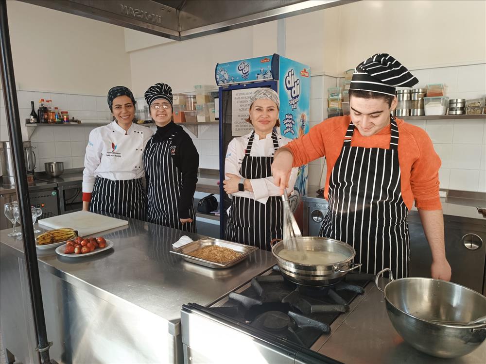Özel Eğitim sınıfı öğretmenleri Sevim Balcı ve Mine Özaslan eşliğinde Yalova Üniversitesi Yalova MYO Aşçılık Programında Pastane Ürünleri dersine konuk oldu.Misafir öğrencimiz Betül’ün özel ilgi alanlarından biri olan yemek yapma becerisini desteklemek ve en sevdiği tatlı olan magnoliayı profesyonel bir mutfak ortamında deneyimlemesini sağlamak amacıyla gerçekleştirilen bu etkinlikte, Öğr. Gör. Arzu Güzel Çakmak ve aşçılık programı öğrencilerimizle, bölümümüze gelen misafir öğrencilerimize unutulmaz anlar yaşattı.Misafir öğrencilerimiz tatlı yapımının her aşamasında yer aldı, emek verdikleri tatlıyı keyifle tattı. Sosyal hayata uyum, özgüven ve mutlulukla dolu çok özel bir deneyim oldu.